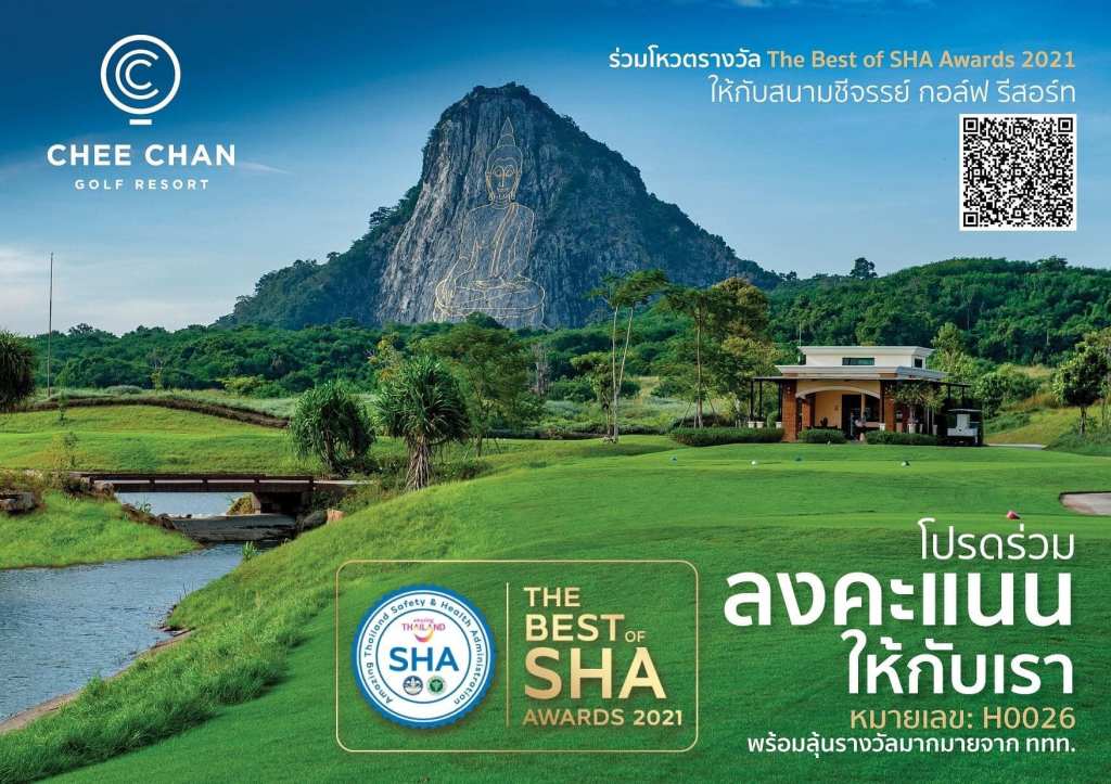 ร่วมโหวต สนามชีจรรย์ กอล์ฟ รีสอร์ท Chee Chan Golf เป็น The Best of SHA Awards 2021 สุดยอดสถานประกอบการที่มีความปลอดภัยด้านสุขอนามัยประจำปี 2564 พร้อมลุ้นรับรางวัลมากมายจากการท่องเที่ยวแห่งประเทศไทย (ททท.) รวมมูลค่า 1 ล้านบาท ตั้งแต่วันนี้ –15 กันยายน 2564