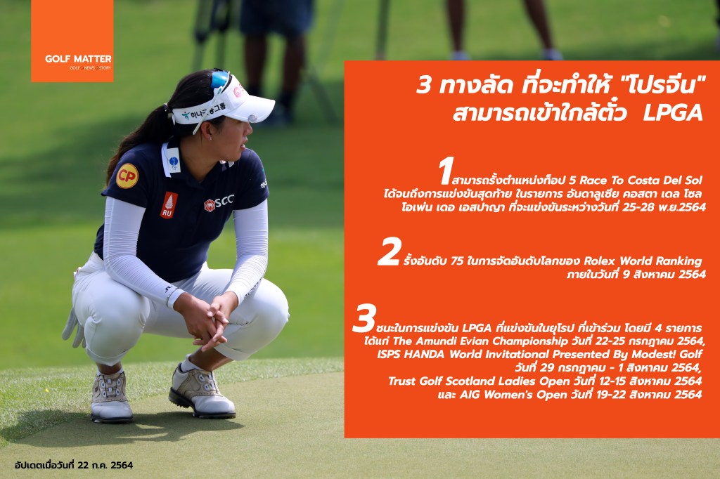 มาเข้าเรื่องของเรากันบ้าง เรามาดู 3 ทางลัดที่จะทำให้ “โปรจีน” อาฒยา ฐิติกุล สามารถเข้าใกล้ตั๋ว LPGA ในระยะเวลาต่อจากนี้กันครับ ว่ามีอะไรบ้าง