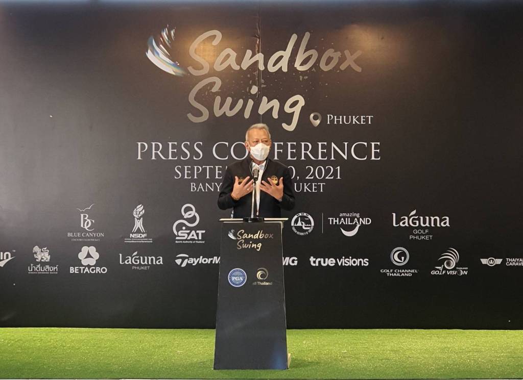 นายพิพัฒน์ รัชกิจประการ รัฐมนตรีว่าการกระทรวงการท่องเที่ยวและกีฬา กล่าวว่า ในช่วงเวลาที่ผ่านมาประเทศไทยและทั่วโลกได้เผชิญวิกฤตจากการแพร่ระบาดของโควิด-19 ที่ส่งผลกระทบต่ออุตสาหกรรมท่องเที่ยวโดยตรง ซึ่งมีธุรกิจและบุคลากรที่อยู่ในอุตสาหกรรมท่องเที่ยวมากมายได้รับความเดือดร้อนอย่างรุนแรง ทั้งนี้รัฐบาลจึงได้เร่งสร้างความเชื่อมั่นให้กับประชาชนและภาคธุรกิจด้วยมาตรการทางสาธารณสุขต่าง ๆ ควบคู่กับการเสริมสร้างความเข้มแข็งทางเศรษฐกิจ โดยในวันที่ 1 กรกฎาคม 2564 ที่ผ่านมา รัฐบาลเปิดพื้นที่นำร่องเพื่อฟื้นฟูเศรษฐกิจด้วยการท่องเที่ยวโดยเริ่มที่จังหวัดภูเก็ตในโครงการ ภูเก็ตแซนด์บ็อกซ์ (Phuket Sandbox) ต้อนรับนักเดินทางจากประเทศที่มีความเสี่ยงต่ำ ผู้เดินทางได้รับการฉีดวัคซีนป้องกันแล้ว และเป็นวัคซีนที่ได้รับการรับรองจากกระทรวงสาธารณสุขของไทย นอกจากนี้ยังต้องแสดงผลตรวจไม่พบเชื้อโควิด-19 ไม่เกิน 72 ชั่วโมง และต้องปฏิบัติตามเงื่อนไขต่าง ๆ ที่รัฐบาลกำหนด สามารถเดินทางเข้าโดยไม่ต้องกักตัว ซึ่งจากการดำเนินโครงการ ตั้งแต่วันที่ 1 กรกฎาคม – 31 สิงหาคม 2564 มีนักท่องเที่ยวสะสม 26,400 คน สร้างรายได้ให้กับประเทศกว่า 1,634 ล้านบาท นักท่องเที่ยว 3 อันดับแรก คือ สหรัฐอเมริกา สหราชอาณาจักร และอิสราเอล ตามลำดับ อีกทั้งยังพุ่งเป้าหมายการทำการตลาดไปยังนักท่องเที่ยวกลุ่มศักยภาพ โดยเฉพาะการท่องเที่ยวเชิงกีฬา (Sport Tourism) จึงได้มอบหมายให้ ททท. และการกีฬาแห่งประเทศไทย วางแผนการจัดการแข่งขันกีฬากอล์ฟอาชีพ ร่วมกับสมาคมกีฬากอล์ฟอาชีพแห่งประเทศไทย และออลไทยแลนด์ กอล์ฟ ทัวร์ (All Thailand Golf Tour) โดยมีวัตถุประสงค์ในการสร้างการรับรู้ถึงความพร้อมของจังหวัดภูเก็ตและสนามกอล์ฟที่จัดการแข่งขันในจังหวัดต่าง ๆ รวมถึงสร้างความมั่นใจให้กับประเทศไทยในด้านความปลอดภัยมีมาตรฐานความปลอดภัยด้านสุขอนามัยด้วยมาตรฐาน Amazing Thailand Safety & Health Administration : SHA ซึ่งได้รับการรับรองจาก World Travel & Tourism Council (WTTC) หรือ สภาการท่องเที่ยวโลกว่าสถานประกอบการที่ได้รับมาตรฐาน SHA จะได้มาตรฐานตามข้อกำหนด Safe Travels Stamp ด้วย เป็นการยกระดับมาตรฐานความปลอดภัยด้านสุขอนามัยของไทยให้เป็นที่ยอมรับในระดับนานาชาติ พร้อมต้อนรับนักท่องเที่ยวเดินทางกลับมาสัมผัสประสบการณ์การท่องเที่ยวในจังหวัดภูเก็ตและประเทศไทย