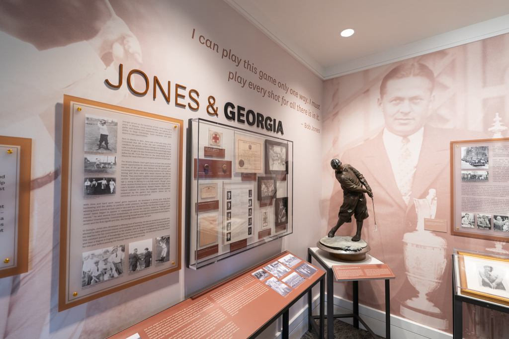 การจัดแสดงถาวรนี้ดูแลโดย วิคตอเรีย เนนโนะ นักประวัติศาสตร์อาวุโสของยูเอสจีเอ ซึ่งภายใน มีประวัติศาสตร์และเรื่องราวของ โจนส์ เกี่ยวกับกอล์ฟ ชัยชนะและความท้าทายของเขาในฐานะหนึ่งคนที่มีอิทธิพลมากที่สุดคนหนึ่งในประวัติศาสตร์กีฬากอล์ฟ นักกีฬาดาวรุ่งของประเทศ และความสำเร็จครั้งประวัติศาสตร์ในแกรนด์สแลมของเขา รวมถึงการต่อสู้กับโรคไซริงโกมีเลียและการแสดงให้เห็นถึงความแข็งแกร่งที่ต่อสู้กับโรคร้าย ก่อนที่เขาจะเสียชีวิตในวันที่ 18 ธันวาคม ค.ศ.1971 รวมอายุ 69 ปี