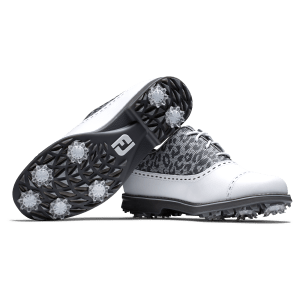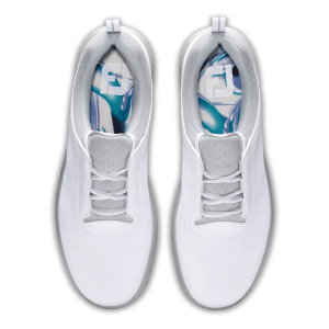 รองเท้ากอล์ฟฟุตจอย รุ่น Premier Series สะท้อนให้เห็นถึงความละเมียดละไมในการบรรจง สรรสร้างรองเท้าให้มีคุณลักษณะเป็น โมเดิร์นคลาสิคดีไซน์ รองเท้ากอล์ฟสตรี ที่หนังด้านบนทำจากหนังแท้ที่อ่อนนุ่ม ซึ่งทั้งยังมีความทนทานและทำความสะอาดง่าย หนังแท้เกรดพรีเมี่ยมที่นำมาทำนี้มีความเบา ทนทาน และกันน้ำได้ดีอย่างยิ่ง ให้ความมั่นใจได้ว่าเท้าคุณจะถูกโอบอุ้มด้วยวัสดุ EVA fitbed ที่เข้ารูปเท้าคุณ ป้องกันเท้าคุณขณะใส่ออกรอบได้อย่างสบาย และยืนได้อย่างมั่นคง พื้นรองเท้าที่ออกแบบพิเศษทั้ง Versatrax+ outsole และ Tour proven Pulsar LP ออกแบบให้ใส่ยึดเกาะพื้นอย่างที่สุด ในทุกสภาพพื้นผิว ไม่ว่าเปียกหรือแห้ง