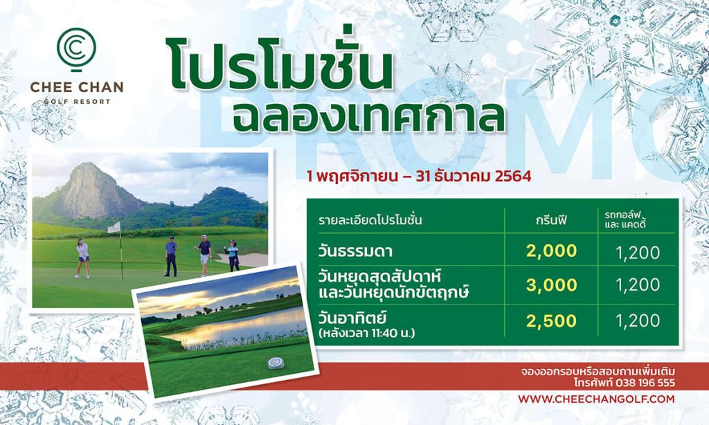 สนามชีจรรย์ กอล์ฟ รีสอร์ท มอบโปรโมชั่นฉลองต้อนรับเทศกาลแห่งความสุขด้วยข้อเสนอสุดพิเศษแก่ลูกค้ามากมาย ทั้งออกรอบวันธรรมดาและวันหยุด ตั้งแต่วันที่ 1 พฤศจิกายน ถึง 31 ธันวาคม ศกนี้ พร้อมด้วยมาตรการป้องกันความปลอดภัยให้กับลูกค้าที่มาใช้บริการอย่างเต็มที่