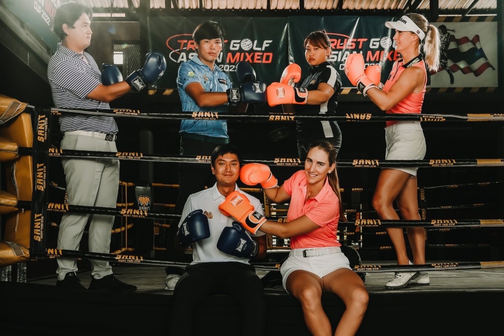 โปรกอล์ฟชั้นนำแปลงโฉมเป็นนักมวยไทย ในกิจกรรมโปรโมทการแข่งขัน “ทรัสต์กอล์ฟ เอเชียน มิกซ์ ซีรีส์” ที่จะประเดิมสนามแรกในรายการ “ทรัสต์กอล์ฟ เอเชียน มิกซ์ คัพ” วันที่ 7-10 เมษายน 2565 ที่ สยามคันทรีคลับ วอเตอร์ไซด์ พัทยา จ.ชลบุรี