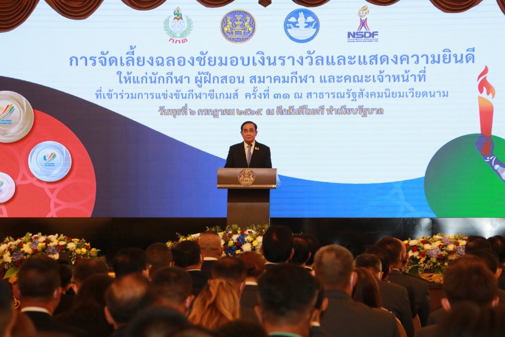 พลเอกประยุทธ์ จันทร์โอชา นายกรัฐมนตรี เป็นประธานในงานเลี้ยงฉลองชัย มอบเงินรางวัล และแสดงความยินดีให้แก่นักกีฬา ผู้ฝึกสอน และสมาคมกีฬาที่ใช้คำว่า “แห่งประเทศไทย” ที่เข้าร่วมการแข่งขันกีฬาซีเกมส์ ครั้งที่ 31 ณ สาธารณรัฐสังคมนิยมเวียดนาม โดยมี พลเอก ประวิตร วงษ์สุวรรณ รองนายกรัฐมนตรี, ดร.ก้องศักด ยอดมณี ผู้ว่าการการกีฬาแห่งประเทศไทย, คณะผู้บริหาร และนักกีฬาทีมชาติไทย ชุดซีเกมส์ ครั้งที่ 31 ร่วมงานเลี้ยง ณ ตึกสันติไมตรี ทำเนียบรัฐบาล