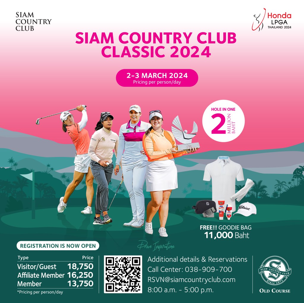 สยามคันทรีคลับขอเชิญนักกอล์ฟที่สนใจเข้าร่วมการแข่งขัน “สยามคันทรีคลับคลาสสิค 2024” เพื่อสัมผัสประสบการณ์การเล่นกอล์ฟในบรรยากาศการเซ็ทอัพและความท้าทายระดับการแข่งขันกอล์ฟระดับโลก ฮอนด้า แอลพีจีเอ ไทยแลนด์ 2024 สนุกสนานกับระยะการแข่งขันระดับแชมปี้ยนชิพ ตำแหน่งการเจาะหลุม และบรรยากาศความสวยงามของสนามที่ใช้เวลาเตรียมความพร้อมแบบเต็มพิกัดเพื่อให้นักกอล์ฟได้ประชันวงสวิงกันอย่างเต็มที่ พิเศษสุดรางวัล “โฮลอินวัน” รถยนต์จากแบรนด์ชั้นนำฮอนด้า และรางวัลสมาชิกแบบ 4 สนามจากสยามคันทรีคลับ ในวันเสาร์ที่ 2 และวันอาทิตย์ที่ 3 มีนาคม 2567