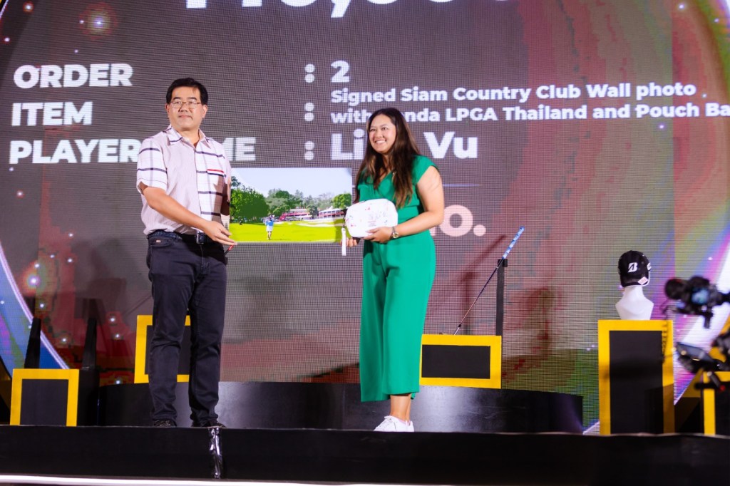 สำหรับไอเทมที่มีมูลค่าการประมูลสูงสุดในงาน “Honda LPGA Thailand 2024 Charity Night” ได้แก่ ถุงกอล์ฟฮอนด้าสุดเอ็กซ์คลูซีฟที่มีลายเซ็นของ 72 นักกอล์ฟที่ร่วมแข่งขัน “ฮอนด้า แอลพีจีเอ ไทยแลนด์ 2024” โดยผู้ชนะการประมูล ได้แก่ ดร.ปราจิน เอี่ยมลําเนา ประธานกรรมการบริหารและประธานเจ้าหน้าที่บริหาร บริษัท กรังด์ปรีซ์ อินเตอร์เนชั่นแนล จำกัด (มหาชน) ประมูลในราคา 500,000 บาท นอกจากนี้ ยังมีเสื้อพร้อมลายเซ็นของ จิน ยอง โค อดีตมือ 1 ของโลก ชาวเกาหลีใต้ ผู้ประมูลได้คือ คุณจรวย ขันมณี 130,000 บาท ภาพถ่าย “สยามคันทรีคลับพร้อมลายเซ็น” ของ ลิเลีย วู นักกอล์ฟมือ 1 ของโลก ชาวอเมริกัน ผู้ที่ประมูลได้คือคุณเบน เกียรติศรีธนกร 140,000 บาท และ หมวกพร้อมลายเซ็นของ บรู๊ค เอ็ม เฮนเดอร์สัน นักกอล์ฟแคนาดา มือ 13 ของโลก ผู้ที่ประมูลได้คือ คุณทนุธรรม เกียรติไพบูลย์ 200,000 บาท และไดร์ฟเวอร์ พร้อมลายเซ็นของ เซลีน บูติเยร์ นักกอล์ฟมือ 3 ของโลก ชาวฝรั่งเศส ผู้ที่ประมูลได้คือ คุณจักกฤช อุเทนสุด 130,000 บาท พร้อมด้วยไอเทมประมูลอื่นๆ โดยยอดเงินที่ได้จากการประมูลไอเทมของนักกอล์ฟในงาน “Honda LPGA Thailand 2024 Charity Night” เมื่อรวมกับยอดเงินบริจาคสมทบของคุณขวัญชัย ปภัสร์พงษ์ ประธานบริษัท สื่อสากล จำกัด จำนวน 120,000 บาท พร้อมด้วยเงินบริจาคจากผู้เข้าร่วมงาน รวมจำนวนเงินทั้งสิ้น 1,529,000 บาท