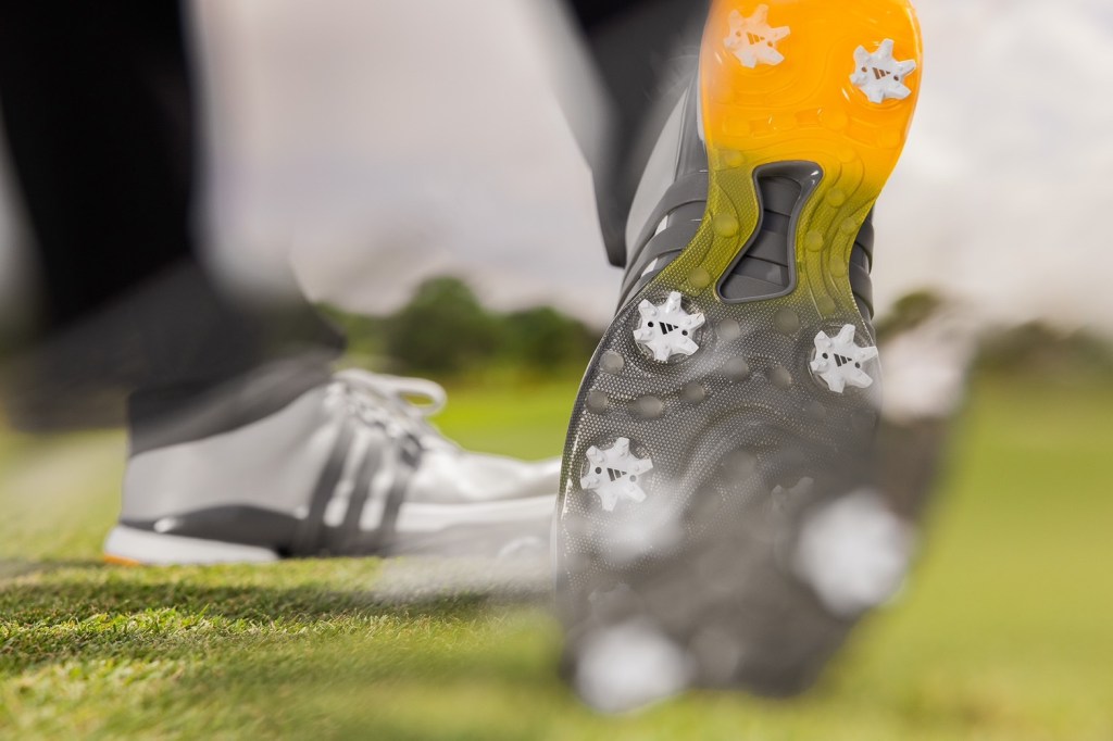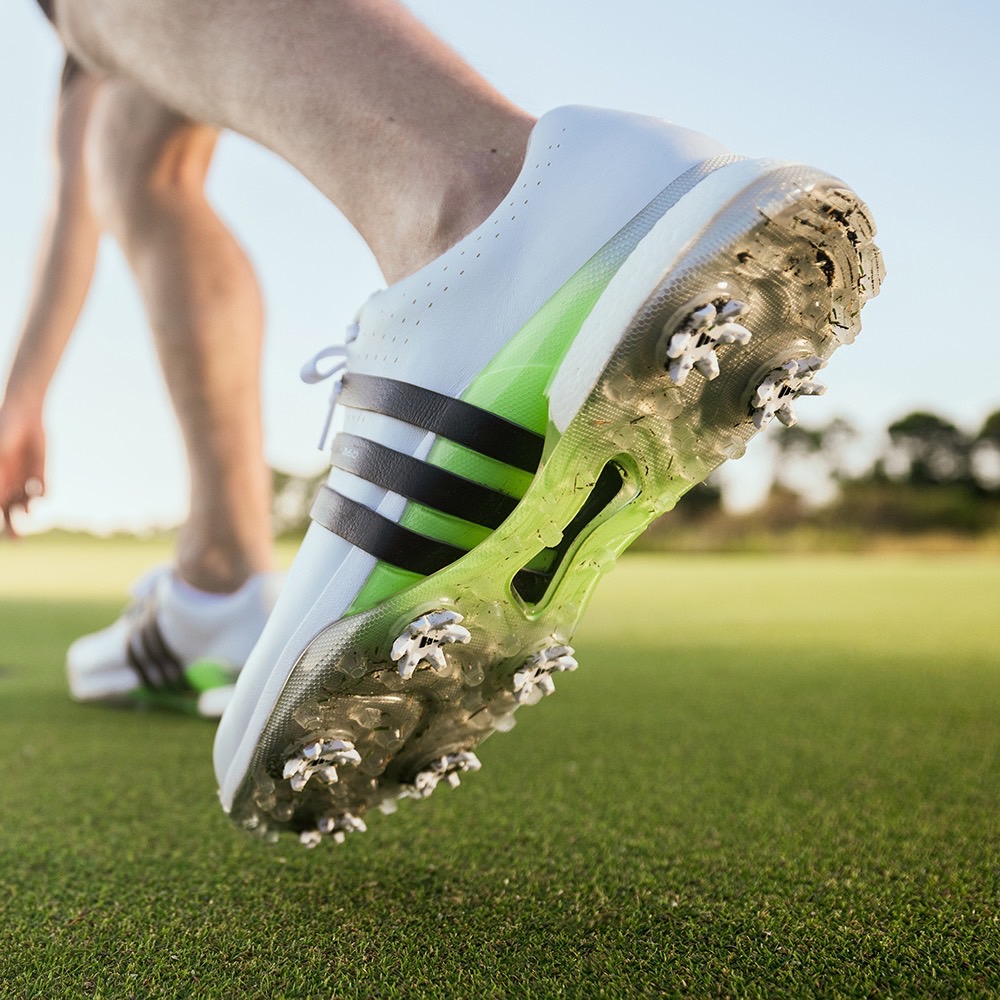 ประสิทธิภาพ (PERFORMANCE) : นับเป็นหัวใจสำคัญที่สุดที่ทีมงานอาดิดาสคำนึงถึง โดยวัสดุและเทคโนโลยีระดับสูงได้แก่ TORSION BRIDGE ชิ้นส่วน TPU ที่มีความอ่อนและแข็งต่างกัน ทำหน้าที่เชื่อมส่วนพื้นชั้นกลางให้แข็งแรง ควบคุมแรงบิดขณะสวิงได้อย่างมั่นคง ทั้งยังสอดรับพื้นชั้นนอกส่วนกลางเท้า (Mid foot) เพิ่มความยืดหยุ่นให้นักกอล์ฟทรงตัวได้อย่างดีแม้พื้นที่ต่างระดับกัน สร้างความนุ่มนวลรับรองการเดินและสวิงได้อย่างรุนแรง ด้วยพื้นชั้นกลาง JET BOOST ในส่วนส้นเท้า ผสานเข้ากับ LIGHTSTRIKE ในส่วนกลางเท้าไปถึงปลายเท้า ส่วนพื้นรองเท้าชั้นนอกออกแบบมาเพื่อการยึดเกาะสูงสุดด้วย THINTECH 7-spike ผลิตจาก TPU ชนิดแวววาวลดการอุดตันของเศษดินและเศษหญ้า ดีไซน์ปุ่มแบบถอดได้ 7 ตำแหน่ง ผสานเข้ากับ Lug และ Dynamic Flex Groove เพื่อประสิทธิภาพที่นักกอล์ฟต้องการมากที่สุด