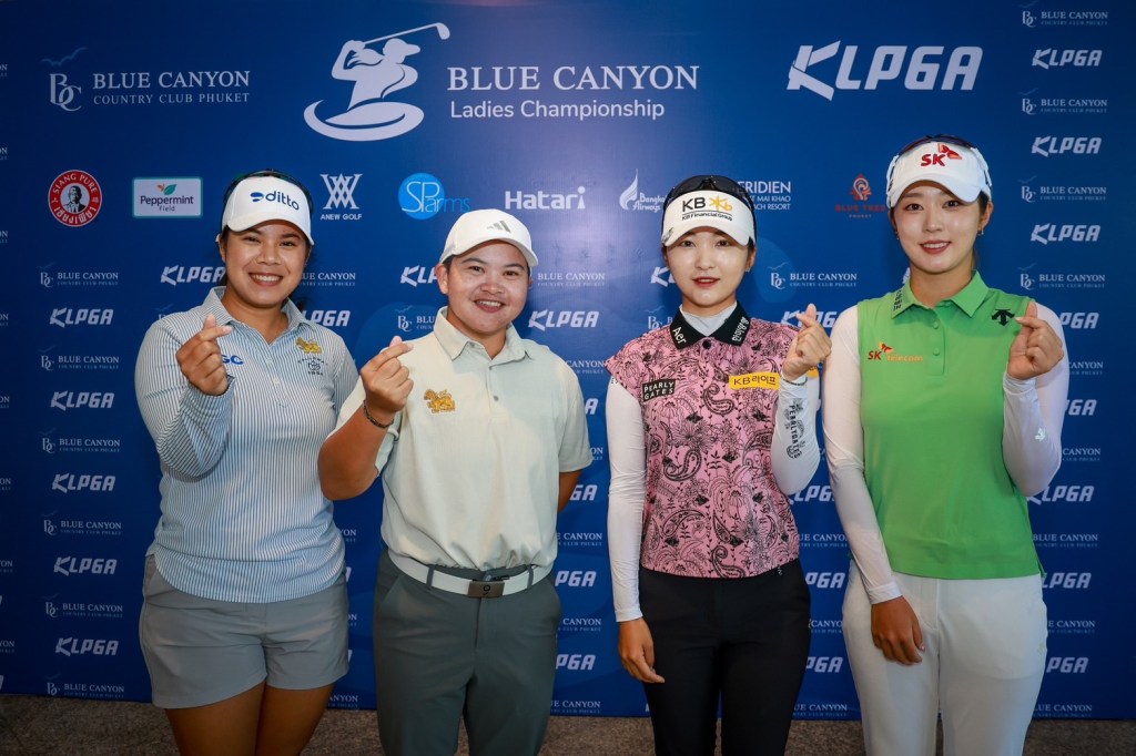เปียโน-อาภิชญา ยุบล พีเค-พัชรจุฑา คงกระพันธ์ สองนักกอล์ฟสาวชั้นนำของไทย พร้อมด้วย คิม แจฮี และ ลี แยวอน สองนักกอล์ฟเกาหลีใต้ดีกรีแชมป์จาก เคแอลพีจีเอ ทัวร์ ยอมรับตื่นเต้น และดีใจได้รับโอกาสเดินทางมาแข่งขันกอล์ฟที่จังหวัดภูเก็ต พร้อมเปิดใจหลังได้ออกรอบซ้อม เคแอลพีจีเอ ทัวร์ รายการ Blue Canyon Ladies Championship สนามบลูแคนยอน คันทรี คลับ จ.ภูเก็ต เมื่อวันพุธที่ 13 มีนาคม 2567