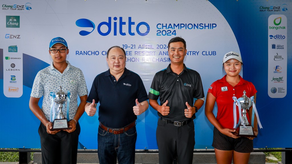 “บริษัท เดอะ เจ็นซ์ จำกัด” ร่วมกับ “บริษัท ดิทโต้ (ประเทศไทย) จำกัด มหาชน” จัดแมทช์แข่งกอล์ฟเยาวชนรายการ “ดิทโต้ แชมเปี้ยนชิพ 2024” ทำการแข่งขัน 3 วัน (54 หลุม) แข่งขันระหว่างวันที่ 19-21 เมษายน นี้ที่แรนโช ชาญวีร์ รีสอร์ท แอนด์ คันทรี คลับ จ.นครราชสีมา เป็นหนึ่งในรายการของ “ช้าง-เจ็นซ์ กอล์ฟ ทัวร์” ที่นับคะแนนสะสมในอันดับนักกอล์ฟสมัครเล่นโลก (World Amateur Golf Ranking – WGAR)